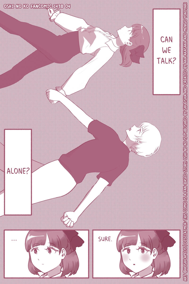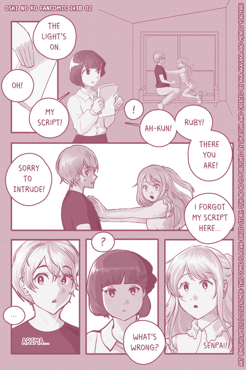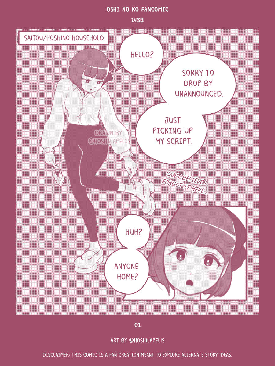 Hi, I'm Hoshi and I'm an artist. Oshi no ko was my favorite manga and Arima Kana is still my favorite character of all time but I'm appalled by the ending to say the least. Thats why I've decided to make a fancomic exploring a different path Oshi no ko could take.Oshi no ko got me through rough times and despite my disappointment, I still hold the characters and story close to my heart. I feel like this fancomic has been a good way to cope with the bitter feelings left behind by the series.I'm pretty busy (first time mom, artist, gamedev) but I'll try to update when I can.